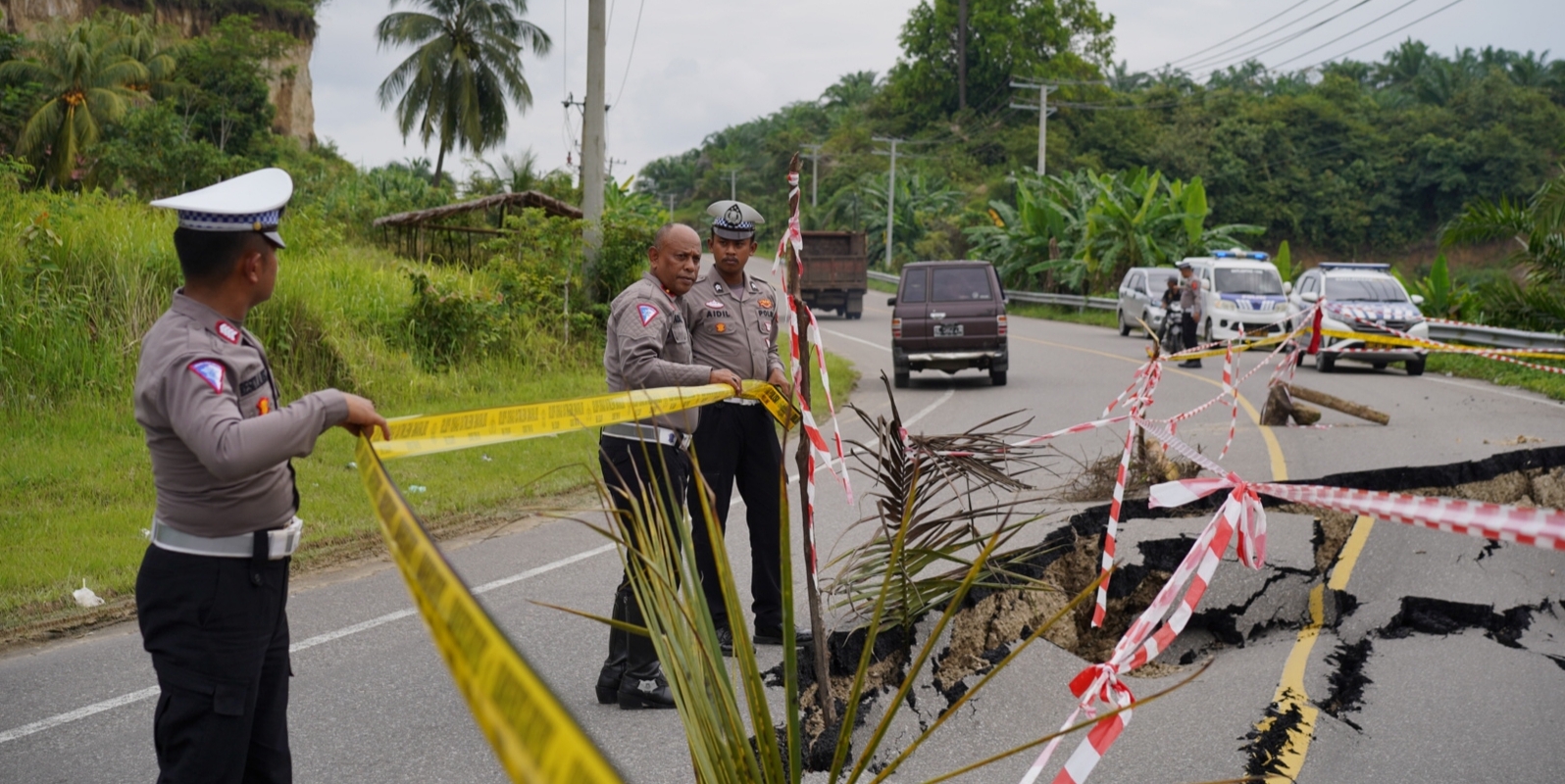 Pihak Kepolisian yang telah terjun kelokasi menghimbau kepada pengguna jalan untuk extra berhati-hati dalam berkendara saat melewati jalan tersebut, khususnya bagi pengendara roda empat untuk sekarang ini belum bisa melewati.