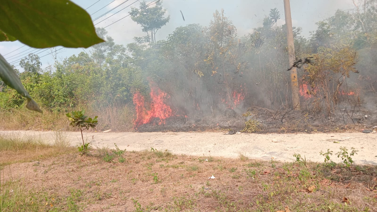 Insiden kebakaran lahan di musim kemarau ini, sempat menghanguskan setidaknya sekitar 1 hektar lahan di tanah kavlingan milik seorang developer, yang berdekatan dengan 2 wilayah perumahan padat penduduk, perumahan Flora dan perumahan Kibang Permai.
