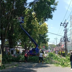 OKU//indonesia45.com – PLN Unit Layanan Pelanggan (ULP) Baturaja melakukan kegiatan pemangkasan pohon bersama Dinas Perkim Kabupaten OKU yang bertujuan untuk memastikan jarak