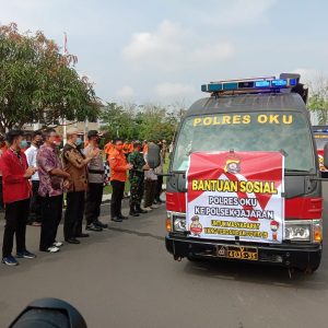 Polres OKU Bagikan Bansos Ke Masyarakat Terdampak Pandemi Covid